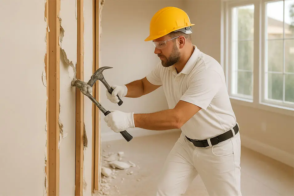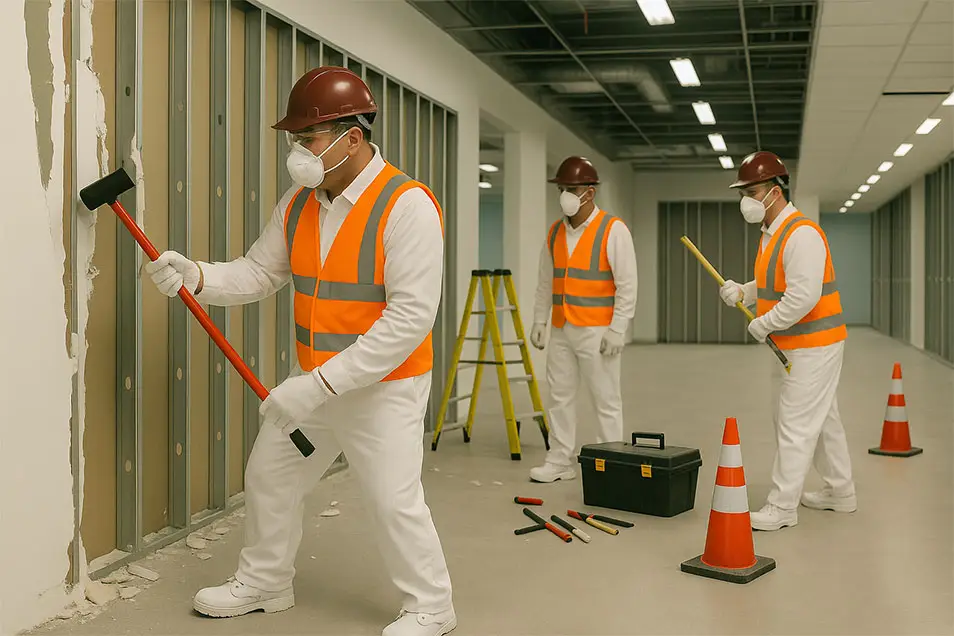 Utilities are disconnected, and protective barriers are installed. We secure the surrounding property and isolate the work zone to prevent damage or dust spread.
